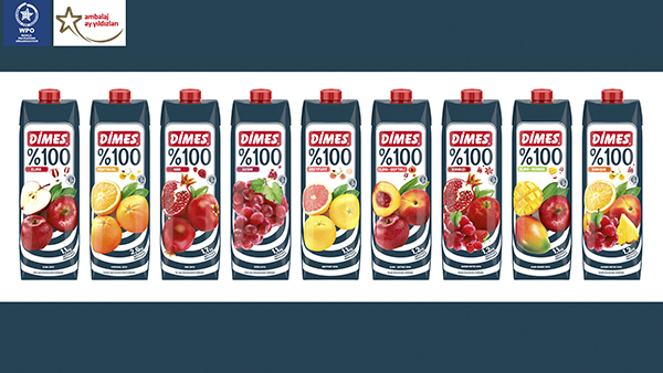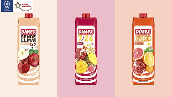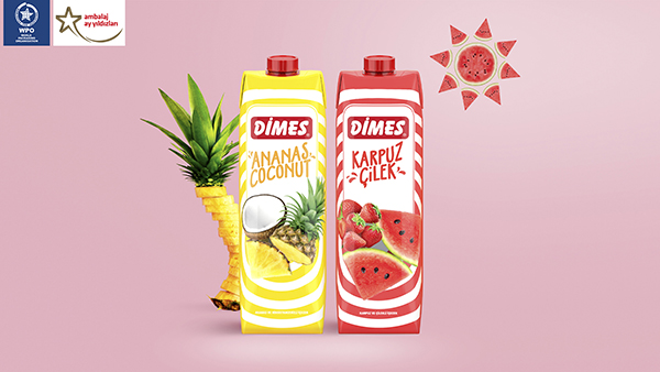 DİMES'in; HAYATA BAŞKA BAK iletişimiyle uyumlu, renkleri ve meyveyi sahiplendiği yeni ambalajında, pozitif, samimi ve rafta ayrışacak ikonsal bir tasarım amaçlamıştık. Hedeflerden biri, kategorideki tüketici karar ağacında önemli olan marka ve çeşidi vurgulamaktı. Diğer bir hedef ise, tek tip dizayna geçerek blok teşhir gücünü artırmaktı. Hiçbir rakipte olmayan ürün çeşitliliğini yansıtmak ve pozitif enerjiyi vermek için her bir varyanta kendi meyvesinin rengini verdik. Meyvelerin halkaların odağındaki kuşbakışı kullanımı rakiplerden ayrışmayı sağladı. Halkalar ve tek tip dizayn rafta bütünleşik bir hat oluşturdu, ikonik bir marka çapasına dönüştü.